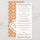 Cartões de caridade de lembrança de casamento inspirados em azulejos franceses marroquinos elegantes e exóticos com um desenho de padrão geométrico laranja e dourado repetitivo e floreios florais em dourado. Este design de casamento sofisticado e luxuoso é perfeito para um casamento temático marroquino, Arabian Nights ou Aladdin. Exclua qualquer texto para deixar qualquer coisa em branco. Se precisar de ajuda com o alinhamento ou espaçamento do texto, por favor, envie-me um e-mail para chrissyh@chrissyhstudios.com ANTES de fazer o seu pedido. Obra de arte e design © Chrissy H. Studios, LLC. Todos os direitos reservados.