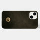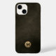 Simples E Moderno Bruto Monograma Dourado Metálico Emblem Emblem Textura de Couro em Descamação. Elegante emblema monográfico de ouro metálico escovado com monograma inicial em tipografia moderna num fundo de textura de couro em tons de castanho preto.