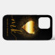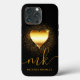 Dourado coração sobre fundo preto com nome personalizado e monograma.