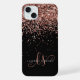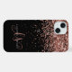 Capas de iphone de Monograma Elegante com Glitter Dourada Glitter. Personalize facilmente esta design de capa de telefone de chic com elegante brilho brilhante rosa de ouro em fundo preto. O design apresenta seu monograma manuscrito com toalhetes bonito e nome.