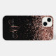 Capas de iphone de Monograma Elegante com Glitter Dourada Glitter. Personalize facilmente esta design de capa de telefone de chic com elegante brilho brilhante rosa de ouro em fundo preto. O design apresenta seu monograma manuscrito com toalhetes bonito e nome.