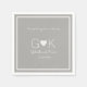 Um design elegante e chico em um guardanapo de papel de cinza, para sua festa de recepção de casamento, personalizado com suas iniciais (um belo monograma com a imagem de um coração) e texto personalizado (Obrigados para participar do dia do nosso casamento)...