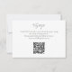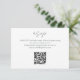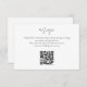 Este cartão de resposta RSVP de casamento de dois lados, um código QR do site de casamento e um adorável monograma de casal floral no fundo. Um conjunto contemporâneo de fontes em verde-escuro, contra fundo branco, define um tom elegante e chico.