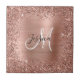 Azulejo cerâmico pequeno quadrado monogramado decorativo para o seu casamento de noiva. Lindos gráficos de brilho falso glamour feminino, brilho rosa dourado falso e folha ombre rosa dourada e rosa. Você pode personalizar o estilo e a cor para a tipografia da monograma personalizada. Todo o brilho e esplendor são criados com gráficos de arte digital que imprimem plano como uma foto nos seus suprimentos de festa.