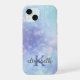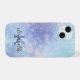 Um belo design púrpura azul com flocos de neve e ílices pingando do topo. Monograma com seu sobrenome inicial e seu nome. Monograma duplo