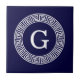 Monograma inicial com formato marinho azul e branco grego Key Round Um fundo sólido na moda com uma área branca de quadro Chave grega para o seu monograma, nome ou outro texto. Você também pode alterar a fonte do texto, alterar o tamanho e a cor da fonte, mover o texto, ajustar o tamanho do quadro, etc. Se você quiser esta design em outras cores, basta soltar um e-mail para nós. 2014 ©FantabulousPatterns Todos os direitos reservados