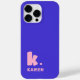Cobrir telefônico que apresenta o seu monograma inicial numa fonte grande e negrito e o seu nome abaixo. Texto cor-de-rosa sobre fundo azul. As cores são personalizáveis na ferramenta design.