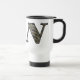 Letra monográfica elegante N cheia de delicadas flores brancas hidrangea viagem café ou uma caneca de chá. Clique em Personalizar para adicionar texto. ideia de presente de excelente. Esta imagem está disponível em muitos produtos da minha galeria.