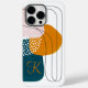 Maleta iPhone 14 Pro Máx. de na moda Monograma K Teal Orange Boho Abstrato.