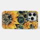 Monograma O brilho moderno do girassol personalizado iPhone 15 Pro Máx Capa de telefone apresenta um padrão de girassol com brilho sujo de ouro e personalizado com seu monograma personalizado no centro. Presente perfeito para ela no Natal, aniversário, Dia de as mães e muito mais se for namorada, irmã, mãe, amigos. Criado pelo Evco Studio www.zazzle.com/store/evcostudio