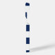 Capa de telefone náutica personalizada com âncora e listras em marinho azul e branco.