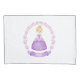 Uma princesa loira de cabelos em um vestido brilhante roxo decora esta fronha. Personalize com o nome de suas garotas. Faz um favor ou um presente de aniversário fofo. Projetado para você pelo Blackberry Boulevard.