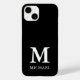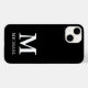 Apresentando nosso Caso de iPhone 14, de Mate Branco e Preto, Monograma Minimalista Moderno, com nome personalizável e inicial. Este é o presente personalizado perfeito que será usado diariamente!