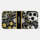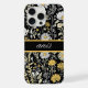 Um padrão floral vibrante e intrincado que apresenta uma variedade de flores brancas e amarelas sobre fundo preto. A peça evoca um senso de natureza, beleza e charme vintage.