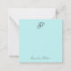 Cartão de Nota Plana Personalizada Simples Modelo de Monograma Moderno Azul Manuscrito.