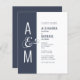 O convite para casamento. Design de casamento geométrico. Cinza azul escura e branca. Tipografia escura e elegante. Monogramas de noiva e de Groom e um grande amperse como símbolo de unidade.