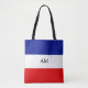 Monograma em Blue Red and White Striped Tote Bag. Monograma apenas na frente.