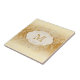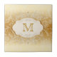 Lindo damasco de marfim com elegante ladrilho de cerâmica monograma de redemoinhos de pérola dourada. Você pode personalizar facilmente este belo ladrilho de cerâmica bege com a sua escolha de texto no estilo de fonte e cor de sua preferência.