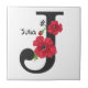 Monograma personalizado editado J texto vermelho flor vermelha papel de artesanato bege floral