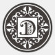 Monograma Inicial Decorativo com um padrão de espiral branco sobre um fundo preto moldando seu monograma elegante. Deixe que seus adesivos personalizados de monograma adicionem um toque único aos seus e-mails especiais, favoritos para festas, cartões de agradecimento, etc.Os adesivos iniciais fazem selagens únicas de envelopes de casamento e etiquetas personalizadas de favoritos de partidos. Todas as letras iniciais do alfabeto monográfico estão disponíveis neste design