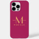 Design de capa de telefone personalizada minimalista elegante com monograma e nome personalizados. A framboesa de Crimson corta o tom bonito vermelho e a cor do texto amarelo alaranjado com linhas formais e estética sofisticada geral. Um estilo moderno de moda para aquela moça moda. Para todos os modelos de iPhone da Apple e alguns smartphones da Samsung Galaxy.