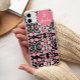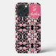 Na moda colorida e elegante padrão de flores cor-de-rosa com retrato elegante sobre fundo preto para amantes botânicos e naturais como presentes únicos de aniversário e feriados de inverno de 2022 para familiares e amigos. Esta design é personalizada e você pode personalizar as iniciais do monograma para adicionar seus nomes e iniciais letras usando uma caligrafia decorativa e uma simples tipografia monográfica personalizada dentro a um círculo geométrico cor-de-rosa.