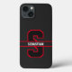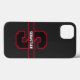Presente ideal para ele, este design moderno apresenta uma fonte simples e esportiva para o monograma em preto com contorno vermelho e nome personalizado em branco. O esboço em torno do monograma assemelha-se aos números frequentemente tridimensionais em camisolas esportivas. O preto mate para o fundo o torna moderno e fornece contraste de excelente para o nome personalizado em branco, fazer ele sobressai.