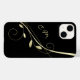 Aqui está uma capa de telefone elegante que apresenta uma espiral moderna de folha de ouro contra um fundo preto dramático. Seu monograma de duas letras está do lado esquerdo em ouro pálido.