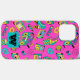 Capa de telefone personalizável de monograma no tema dos anos 80 e 90, com imagens brilhantes e coloridas como o tocador de cassetes, cubo de Rubik, doces, arranhões, etc. em cores rosa-quente, turquesa e amarelas.