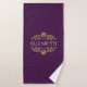 Uma elegante toalha roxa e dourada floresce de banho monograma. Divertido como um doce presente de 16. Adicione seu nome entre o floral dourado floral na frente. Projetado para você pelo Blackberry Boulevard.