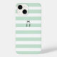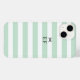 Apresentando nosso novo gabinete iPhone 14, projetado com um simples padrão verde-sábio e listrado branco que certamente virará cabeças. Para adicionar um pouco de beleza, incluímos um pequeno arco preto na frente. E para torná-lo realmente personalizado, o caso pode ser monograma com suas iniciais de escolha. Este caso não só parece excelente, como também fornece proteção confiável para o seu telefone celular. Seu material durável garante que seu telefone permaneça seguro contra arranhões, choques e quedas. Prepare-se para fazer uma declaração com o nosso caso iPhone 14 listrado verde e branco.