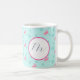 Esta caneca de Natal tropical apresenta um padrão de flamingo cor-de-rosa-d'água sobre um fundo turquesa pálido com flocos de neve. Use o campo modelo para adicionar seu monograma personalizado. Um presente de Natal encantador para o amante flamingo na sua vida. Para ver o decor de pinkmas e os presentes de Natal mais únicos visitam www.zazzle.com/dotellabelle Arte e design originais de aquarela por Victoria Grigaliunas do Do Tell A Belle