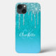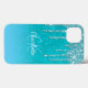 Um mar azul e alto, fundo verde-brilhante do oceano. Decorado com pingos de brilho sujo, aparência de pingar tinta. Personalize e adicione um nome e letras de monograma. Um script estilo moderno, escrito à mão, letras brancas e azuis