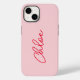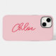 Crie sua própria capas de iphone, mas minimalista, e proteja seu telefone com estilo! Este caso apresenta uma fonte de script de estilo manuscrito na moda grande em vermelho em um plano de fundo rosa mais claro. Selecione entre um estilo fino ou duro de capas de iphone e seu iPhone modelo facilmente nas caixas suspensas abaixo.