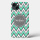 Monogrammed Blue & Grey Chevron iPhone 13 Case