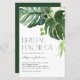 Convide os convidados para o seu evento com este convite de papelaria de noiva. Apresenta ilustrações de aquarelas das folhas de monstera com sotaques falsos de folha de ouro. Personalize este convite à noiva tropical adicionando nome, hora, data e outros detalhes do evento. Este convite para o almoço de noiva verde é perfeito para chás de panela de verão.