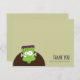 Lindos cartões planos de agradecimento com tema de Halloween. O design apresenta um monstro de Frankenstein simpático e infantil com rosto verde e parafusos no pescoço. Estes cartões são perfeitos para agradecer às pessoas por comparecerem à sua festa de Halloween ou agradecer por um presente. Personalize facilmente com o seu próprio nome. Cartões planos, envelopes incluídos. Copyright © Lisa Marie Robinson | Lisa Marie Art & Illustration. Todos os direitos reservados. É ilegal usar ou duplicar esta, ou qualquer uma de nossas imagens, sem permissão por escrito.
