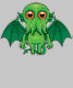 Ilustração vetorial de um bebê verde giro monstro de Cthulhu com grandes olhos laranja. Etiquetas: cthulhu, polvo, monstro, ovelha, chibi, lula, mar, oceano, animal, criatura