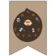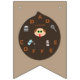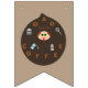 Este belo bunting mostra um desenho de um Pai que é um monstro de café. Seu rosto é dentro uma gota grande de café e ele tem uma língua assustadora e está ficando careca. Açúcar, leite, café e uma colher ao seu redor, tudo o que ele precisa para a sua bebida favorita. O texto marrom claro diz, "Pai ama café".