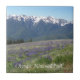 Azulejo cerâmico com uma imagem paisagística cênica das montanhas de Olimpiadas com capas de neve e flores silvestres de campo na Olimpiadas National Park, Washington. Selecione o tamanho do seu azulejo. Faz uma trivet de viagem-souvenir excelente!