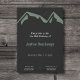 Um convite de aniversário preto com montanhas de cor verde e textos brancos e verdes personalizáveis: perfeito para organizar uma festa de aniversário para um amigo ou membro da sua família! Você pode mudar a mensagem para usá-la para uma aposentadoria, um casamento, um chá de fraldas ou qualquer festa que você esteja organizada!