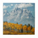 Esta foto caracteriza um bosque de Aspen em cores da queda com as montanhas cobertos de neve no fundo, parque nacional grande de Teton.