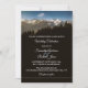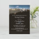 Convite de casamento elegante com pintura de pinheiros com montanhas de neve no fundo. Este convite também tem uma placa RSVP e também está disponível em tamanho quadrado. Você pode escolher entre designs diferentes para o verso do convite, adicionar sua própria foto ou usar uma cor simples.