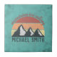 As montanhas de pastéis de safra chamam de design personalizável monograma. Desenho de uma montanha de neve com linhas de cor pastel em amarelo, laranja e vermelho representando o céu do pôr do sol. Acima do círculo céu está um ditado que montanhas estão chamando e debaixo das montanhas há um monograma onde você pode adicionar seu nome. Perfeito para os entusiastas da natureza e caminhada.