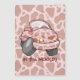 Carro de animação com padrão de vaca rosa. Texto personalizado.