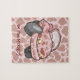Carro de animação com padrão de vaca rosa. Texto personalizado.