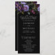 Elegante programa de casamento floral com uma borda de flores roxas e burgundy, folhagem verde e bagas escuras. O programa de casamento floral roxo é complementado pela elegante e moderna tipografia. Personalize a frente do programa de casamento floral gótico com seus nomes, data e local do casamento, e ordem da cerimônia. O programa é revertido para exibir uma lista de sua festa de casamento. Projetado para coordenar com a nossa coleção de casamento Moody Gothic Floral.