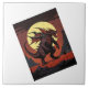 Giant dragon under red moon faces a lone warrior.