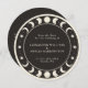 Este livro salva o cartão de data apresenta um design celestial perfeito para qualquer um com lua e estrelas ou tema assustador para o seu casamento. A borda tem um simples design com fases luas e estrelas em uma paleta de cor preta e creme.