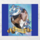 Leitura ilustrada com cor d'água, flores brancas da lua, pássaros e folhas azul-esverdeadas à volta da sua imagem para personalizar para o seu grande dia.